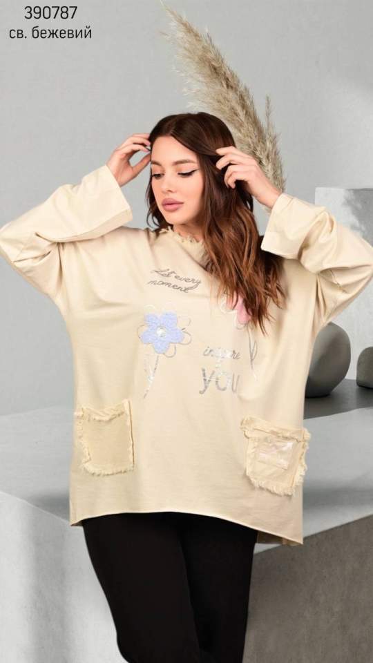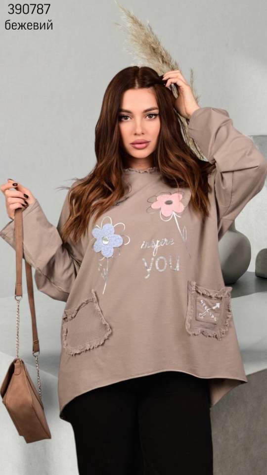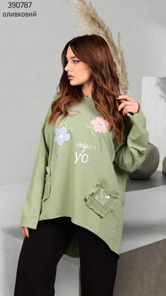 Розмір 1: Напівобхват грудей: 54 см; Напівобхват талії: 51 см; Напівобхват стегон: 51 см; Довжина рукава: 74 см; Довжина виробу: 84 см;