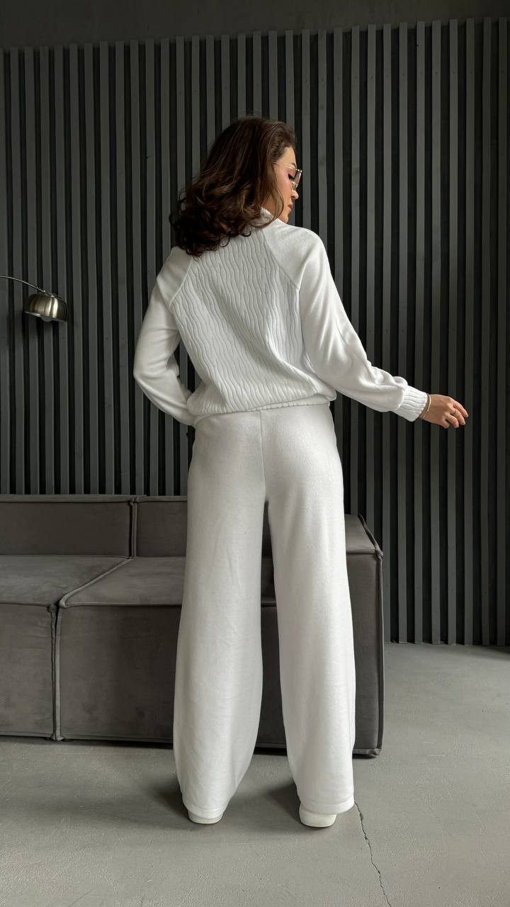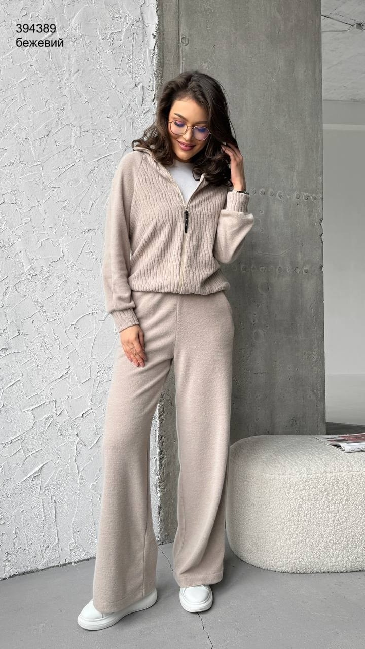 Замовлення 748062 Код 391107 Костюм жіночий. Тканина рубчик приємна до тіла, добре тягнеться й тримає форму. Всередині є легке флісове напилення , тепло й комфортно, ідеальний варіант на прохолодну погоду. Штани високого крою , чудово сідають по фігурі, підкреслюють талію та візуально подовжують ноги. Колір молочний. Гарна якість. Замовлення робила в Трофім. Ціна 255грн супер Відгук