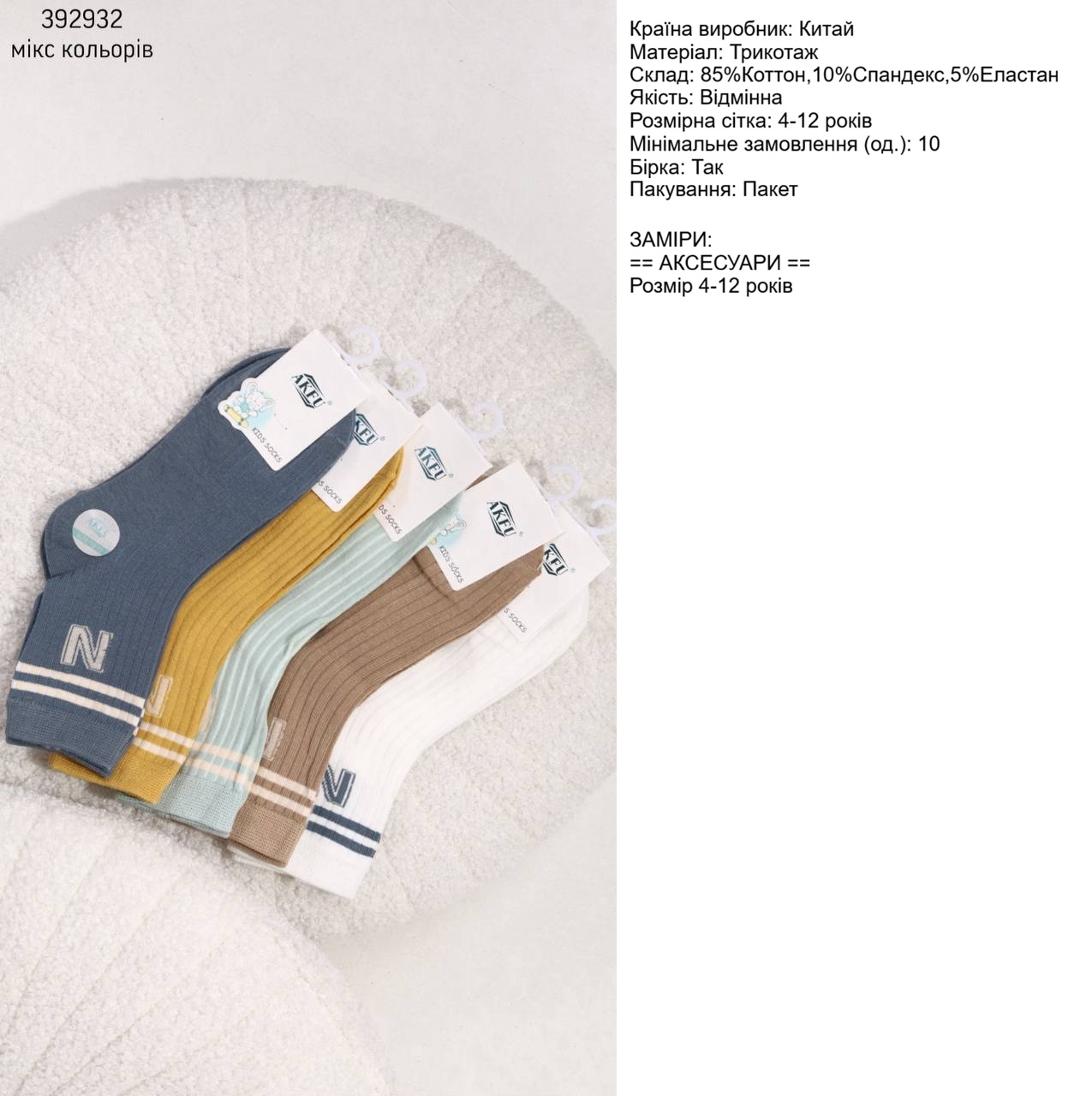 Шкарпетки дитячі (опт) 392932