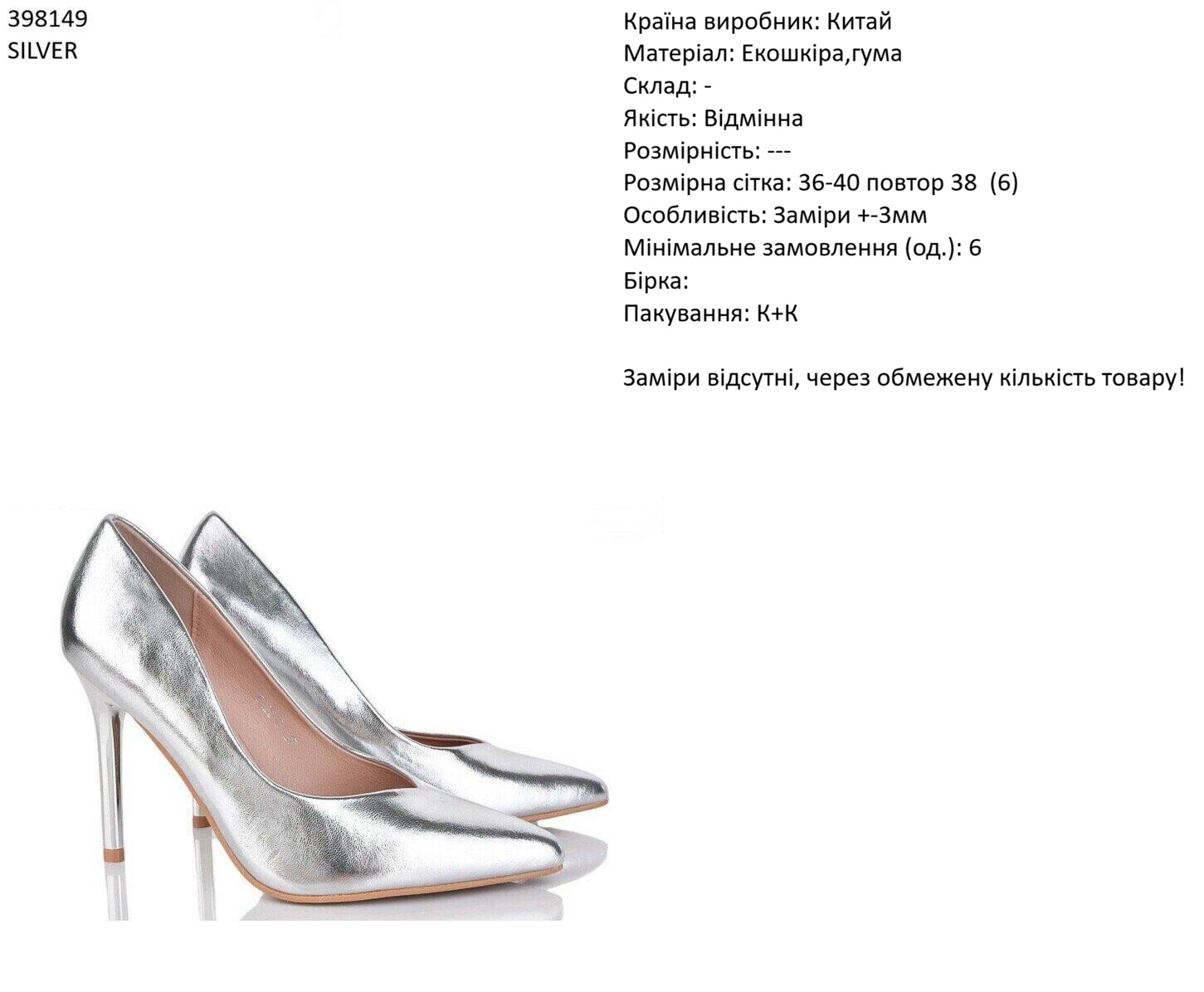 Країна виробник: Китай Матеріал: Екошкіра,гума Склад: Якість: Відмінна Розмірність: Розмірна сітка: 36-40 повтор 38 (6) Особливість: Заміри +-3мм Мінімальне замовлення (од.): 6 Бірка: Пакування: к+к Заміри відсутні, через обмежену кількість товару!